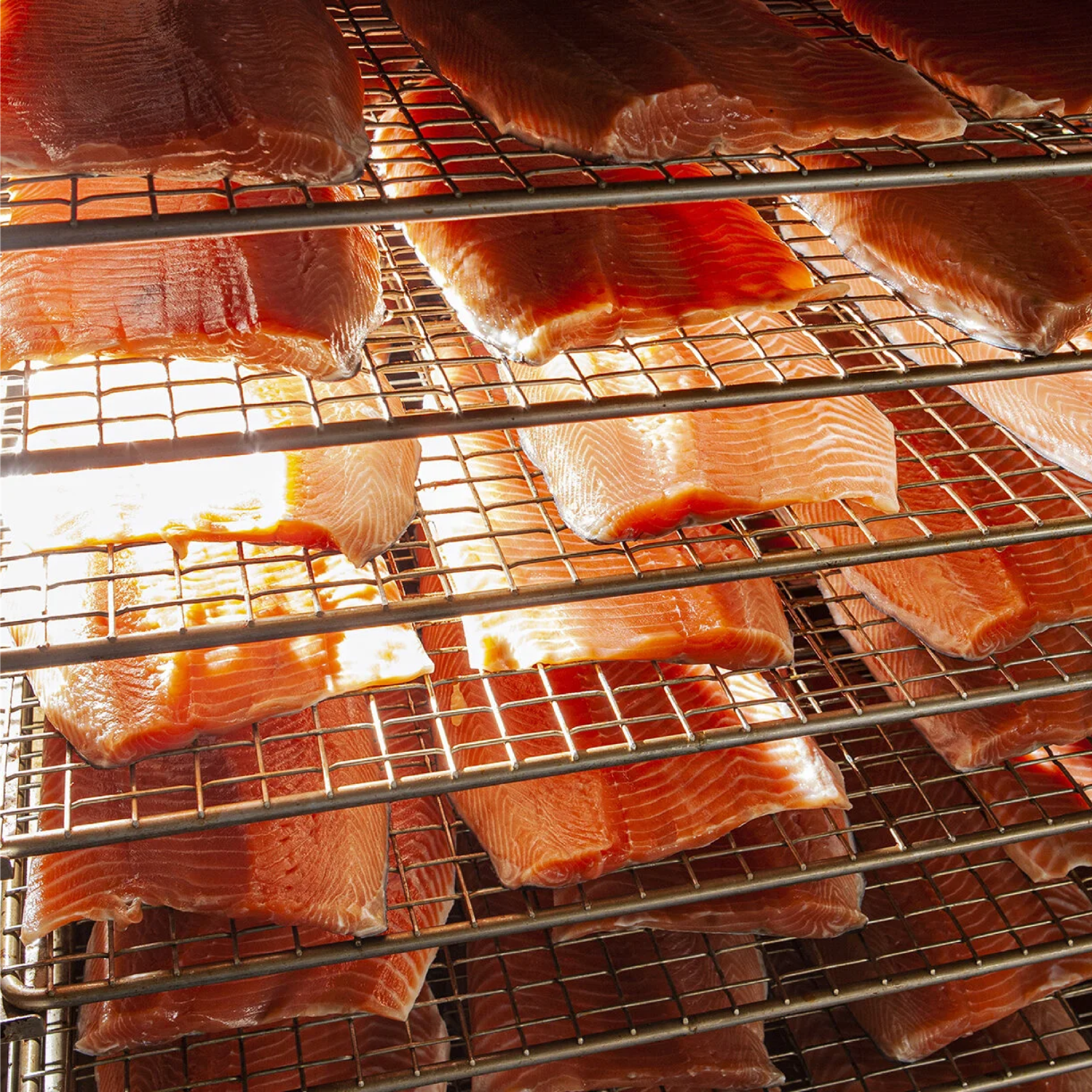 The fillets are then washed and dried and placed into the smoker, where they are gently cold-smoked until they take on the characteristics that make their smoked fish so distinctive—the traditional smoking process which uses three different kinds of natural and fragrant wood chips.